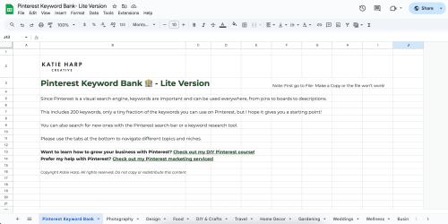 Lite Pinterest Keyword Bank